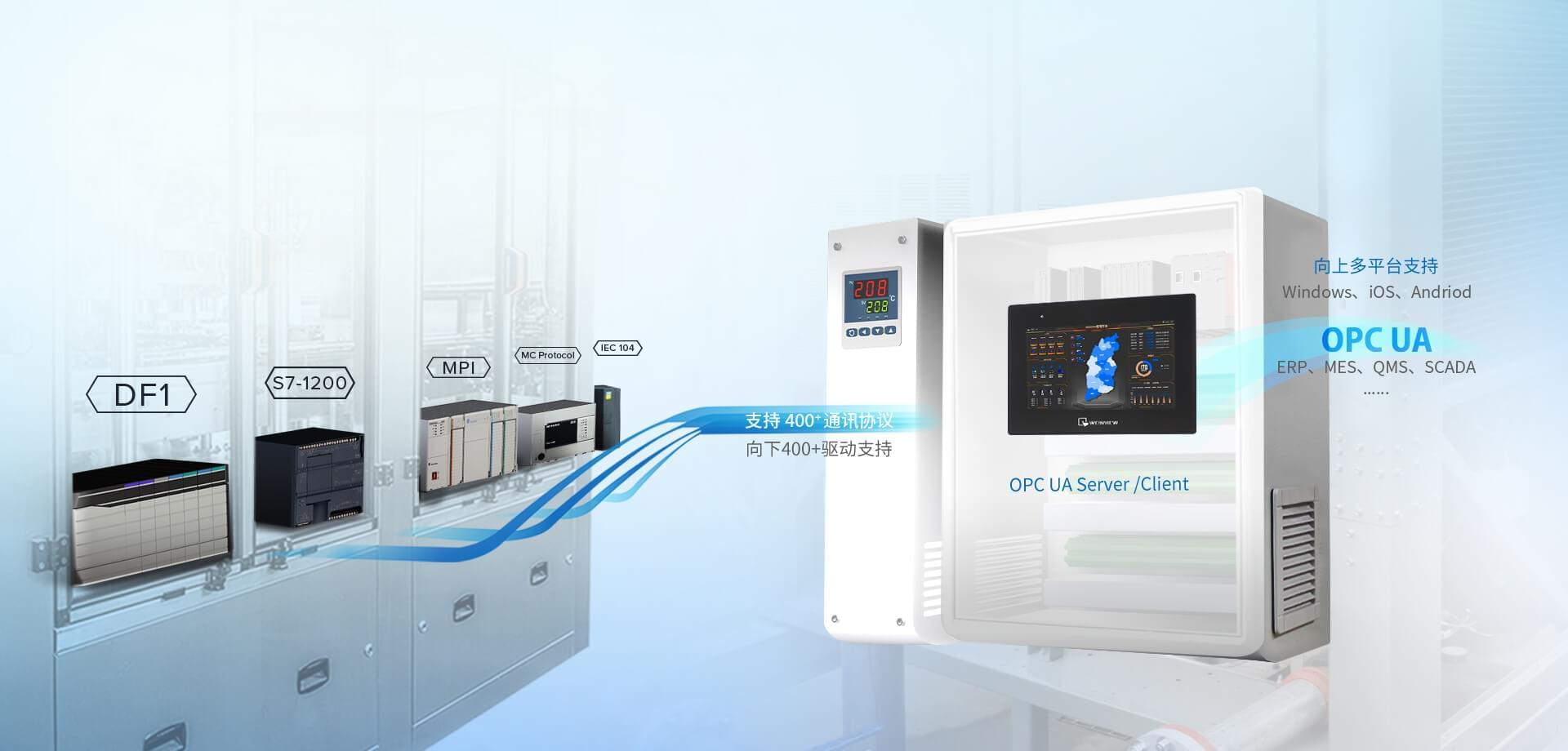 支持 400+ PLC 通訊協(xié)議,物聯(lián)網(wǎng)通訊協(xié)議及數(shù)據(jù)庫連接,能快速整合現(xiàn)場設備資料。